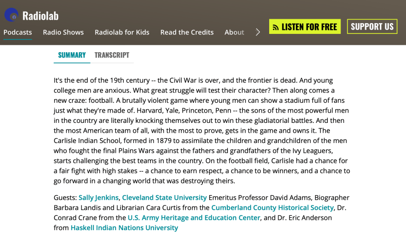 INSTRUCTIONS: Using your detailed notes from the Ghosts of Football Past podcast, write a 250-word summary of the events that occurred in the podcast. Then write a 100-word personal assessment of the treatment of the boys at the Carlisle Indian School.