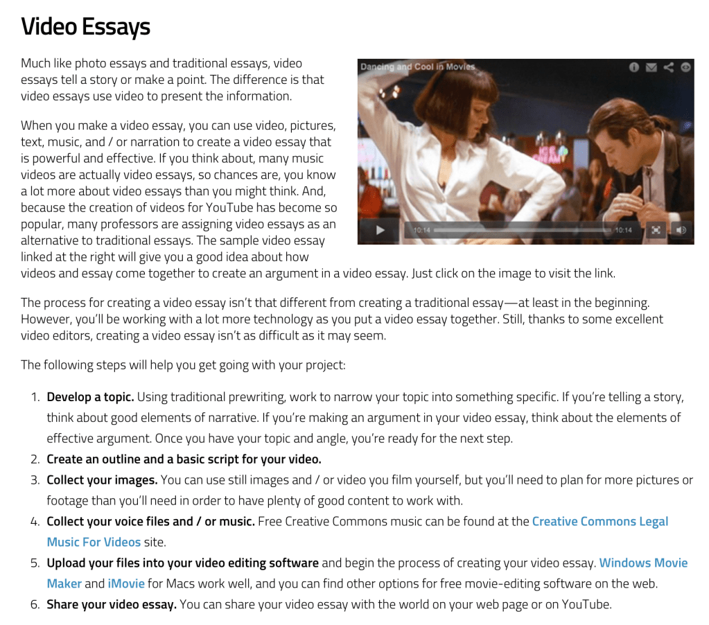 The Project Media culminating project will require students to create a video essay. We will review all of the expectations and requirements outlined below during this lesson to ensure that all students feel comfortable with the parameters of this project.