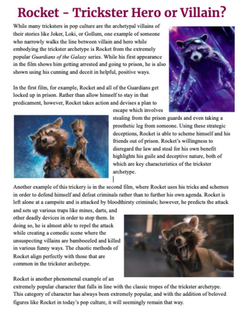INSTRUCTIONS: Writing Exercise #3: You will produce a 400+ word blog post that situates your chosen modern-day trickster within a specific space or culture. Your blog must describe your figure’s activities, characteristics, and motivations, and you must also explain how this trickster’s actions and reputation impact others within the space they live. Assignment Value: 25 Points.
